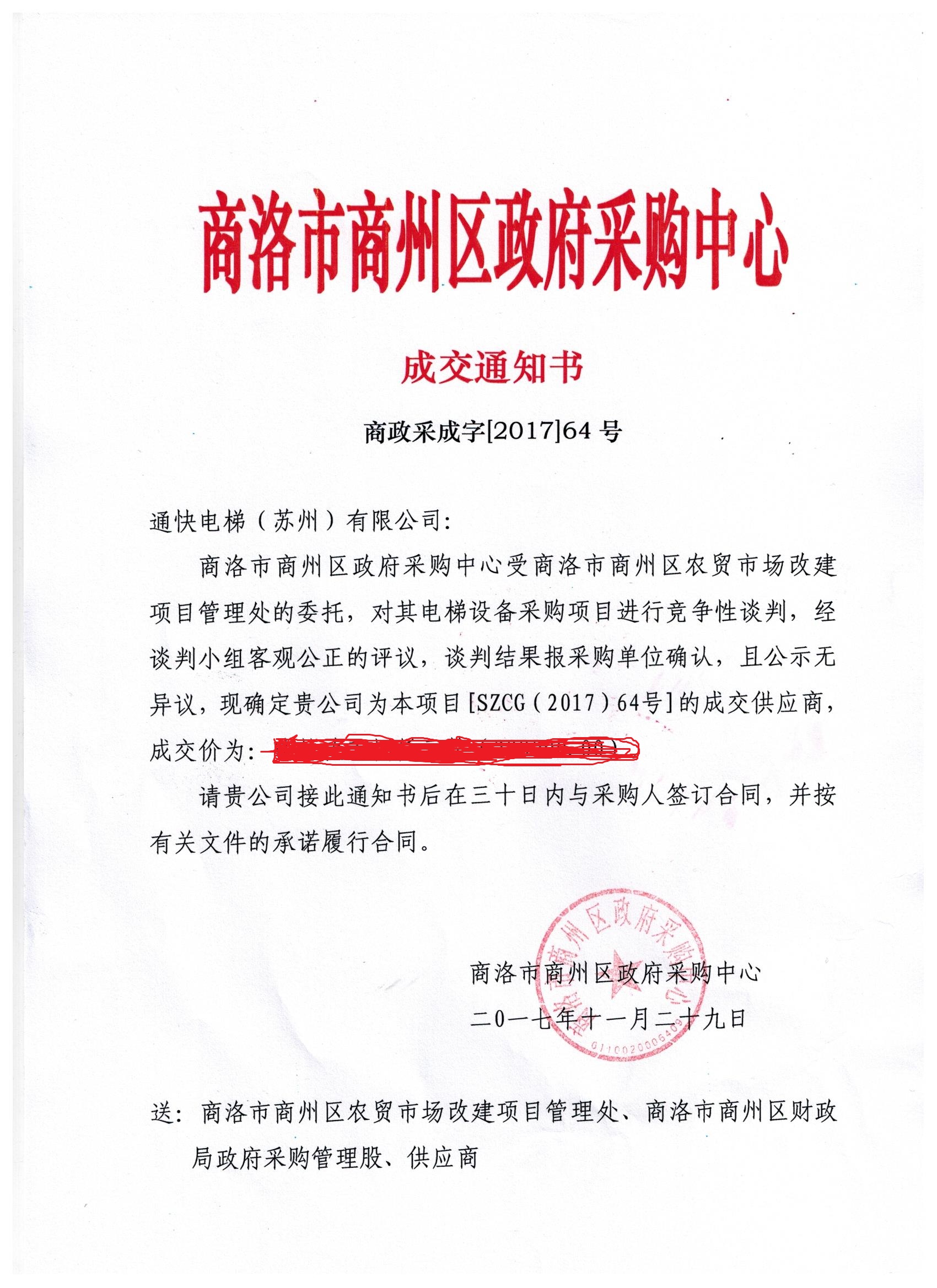 商洛市商州區(qū)農(nóng)貿(mào)市場(chǎng)改建項(xiàng)目管理處電梯中標(biāo)